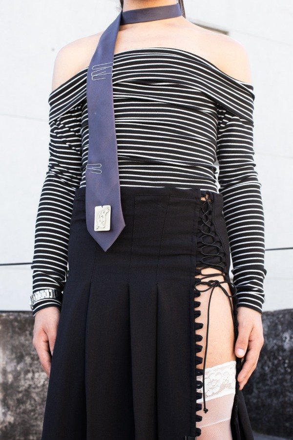 Escote doble tipo bandeau y diseño al cuerpo.